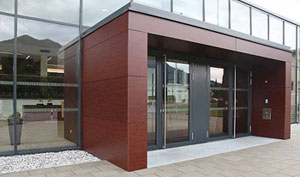 Compact Laminate (Massive laminate) is homogenous facade cladding panels, which are manufactured by penetration large amount of Kraft paper with phenol resin and coating of front and back surfaces with UV – melamine based decorative paper under multilayer presses at high temperatures (170°C) and high pressure (100 – 120 bar kg/cm2) during 60-90 minutes.