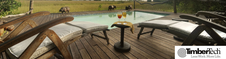 TIMBERTECH Composite wooden decking in various species of different colours and perfect design that offers a non slippery surface with a good grip and effective acupressure to exposed feet recommended for wet areas like the surrounding of swimming pools, gardens, parks, spas, walkways and jogging tracks.